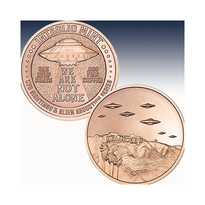 UFOs Over Hollywood – 1 AVDP Oz .999 Fine Copper Round | UFO Sightings & Alien Abduction Series