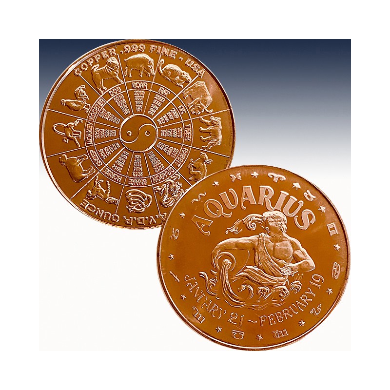 1 x 1 Unze (oz) Copper USA "Chinese Zodiac - Wassermann"