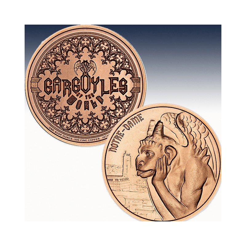 Notre-Dame I – 1 AVDP Oz .999 Fine Copper Round | Gargoyles of the World Series
