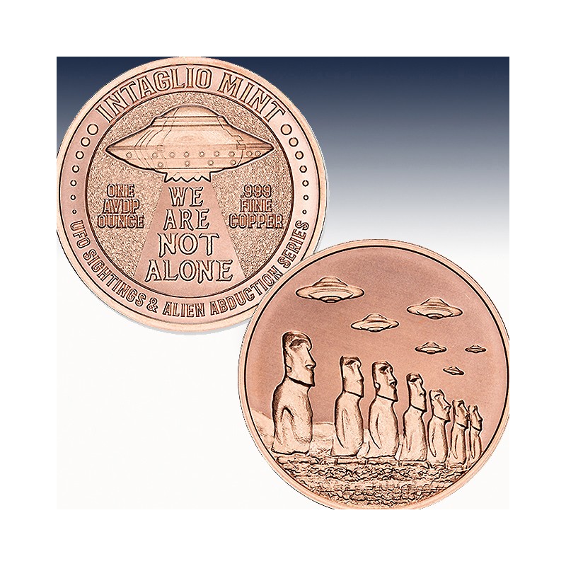 UFOs Over Easter Island – 1 AVDP Oz .999 Fine Copper Round | UFO Sightings & Alien Abduction Series