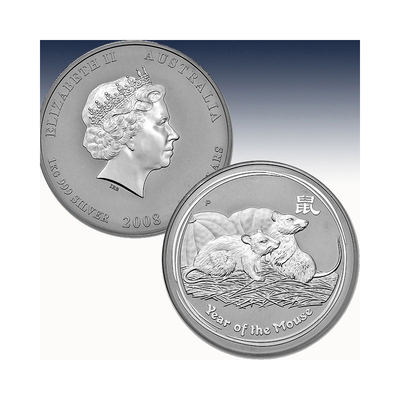 Ein muß für jeden Sammler ist die 1 oz Silbermünze Lunar III. Auf der Vorderseite erkennt man den Schriftzug Mouse 2008. Auf der Rückseite zu sehen ist die Abbildung der Queen Elisabeth II, in dem Schriftzug 1oz 999 Silver, 2020, 1 Dollar, Elisabeth II und Australia. Diese Prägung sagt aus, das die 1oz Silbermünze Lunar "Jahr der Maus" in Australien als offizielle Zahlungsmitteldass gilt.