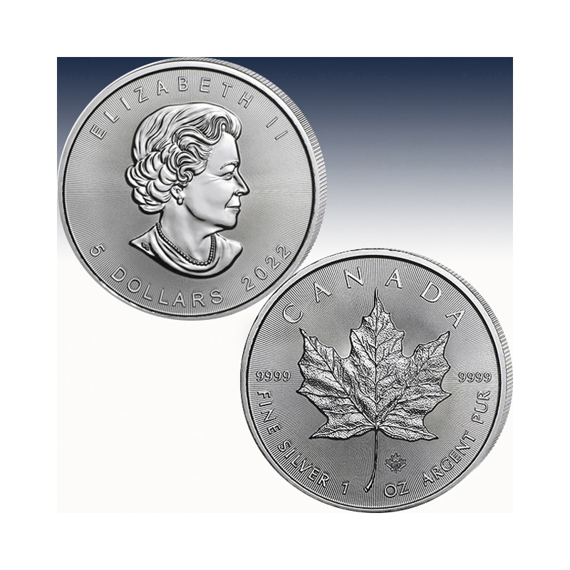In der kanadischen Royal Canadian Mint wird die wohl verbreiteteste Anlagemünze/ Bullionmünze geprägt - der Maple Leaf. Der Beginn war im Jahre 1979 mit dem Maple Leaf zunächst aus Gold, seit 1988 gibt es diese kanadische Münze mit dem Ahornblatt aber auch in Silber – mit einem Gewicht von 1 Unze und einem Nennwert von 5 Canadischen Dollar (CAD). Selbstverständlich sind die Maples als offizielles Zahlungsmittel in ihrer Heimat anerkannt.