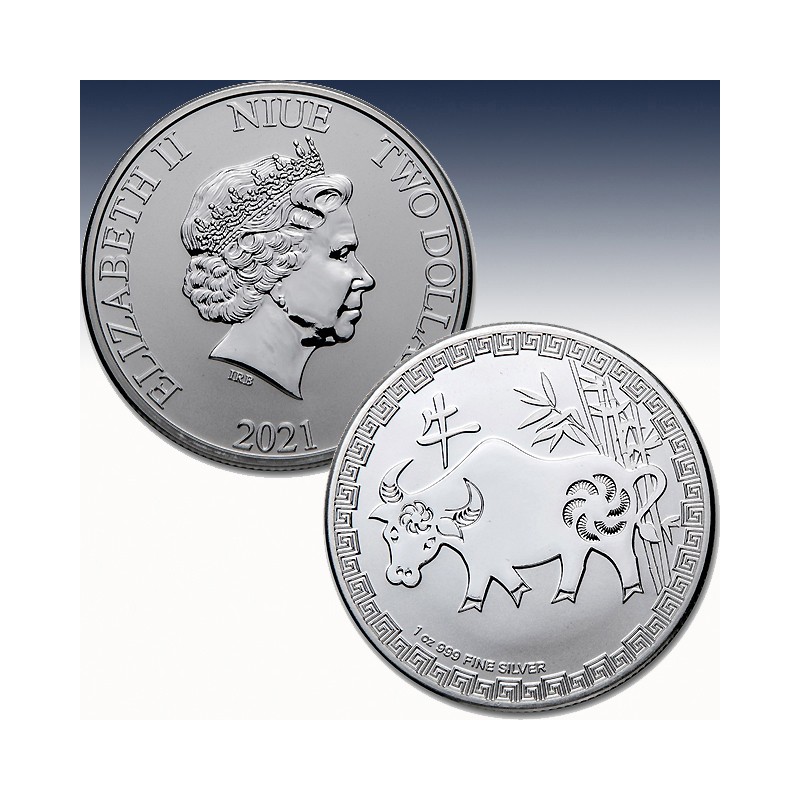 1 x 1 Unze (oz) Silbermünze 2$ Niue Islands "Lunar Year of the Ox 2021"