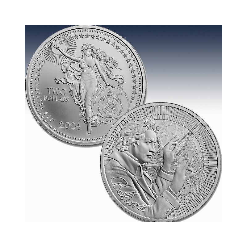 This 1 oz silver BU coin features an elegant design, paying homage to one of the most famous Icons of Inspiration of all time – Beethoven. Add this coin to your collection today!