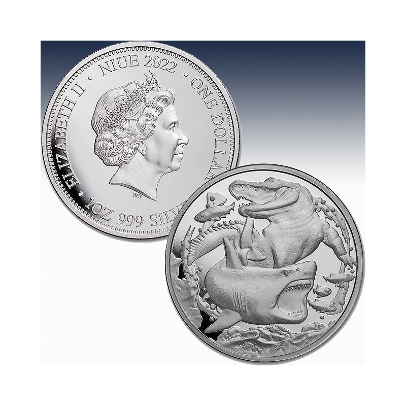1 x 1 Unze (oz) Silbermünze 1$ Niue "Apex Predators - Shark vs Crocodile 2022"