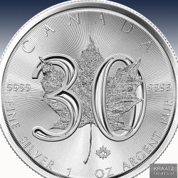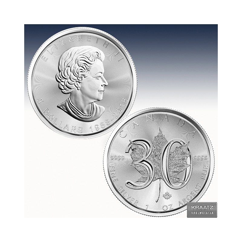 1 x 1 Unze (oz) Silbermünze 5$ Canada "Maple Leaf 30th Anniversary 2018"