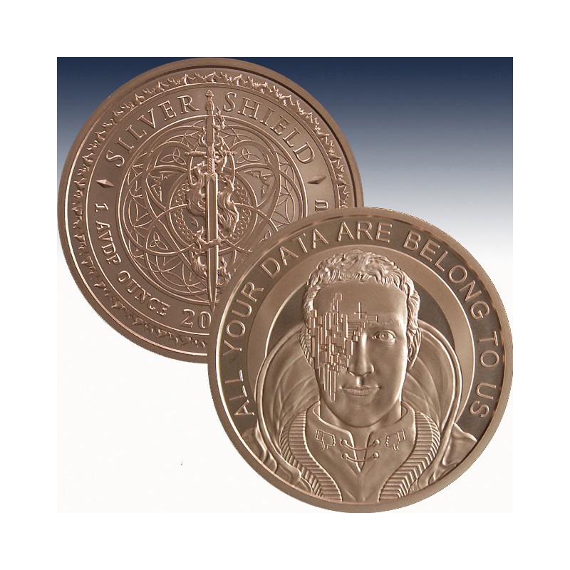 The 2019 1 oz BU Zuckerborg continues the Silver Shield InfoIndCom series.