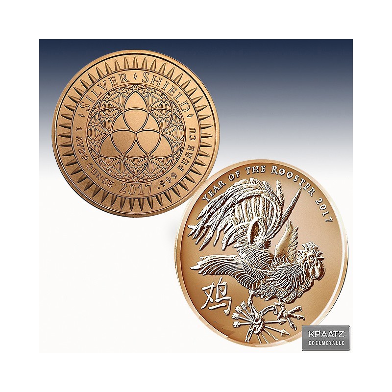 1 x 1 Unze (oz) Copper Round Silver Shield