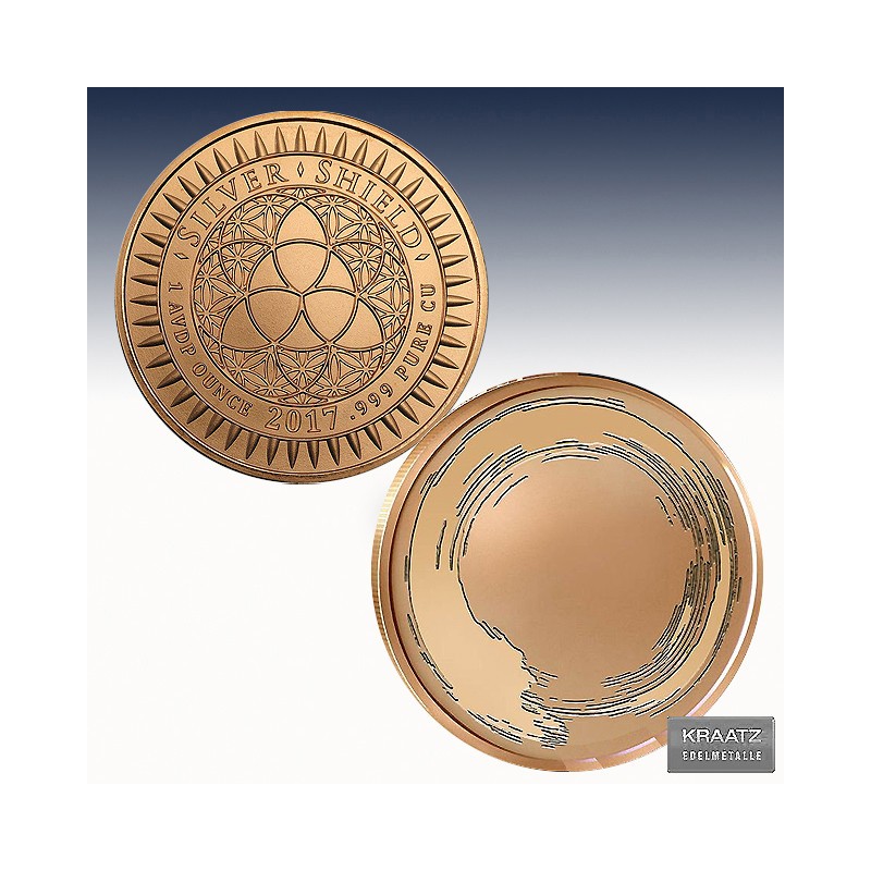 1 x 1 Unze (oz) Copper Round Silver Shield
