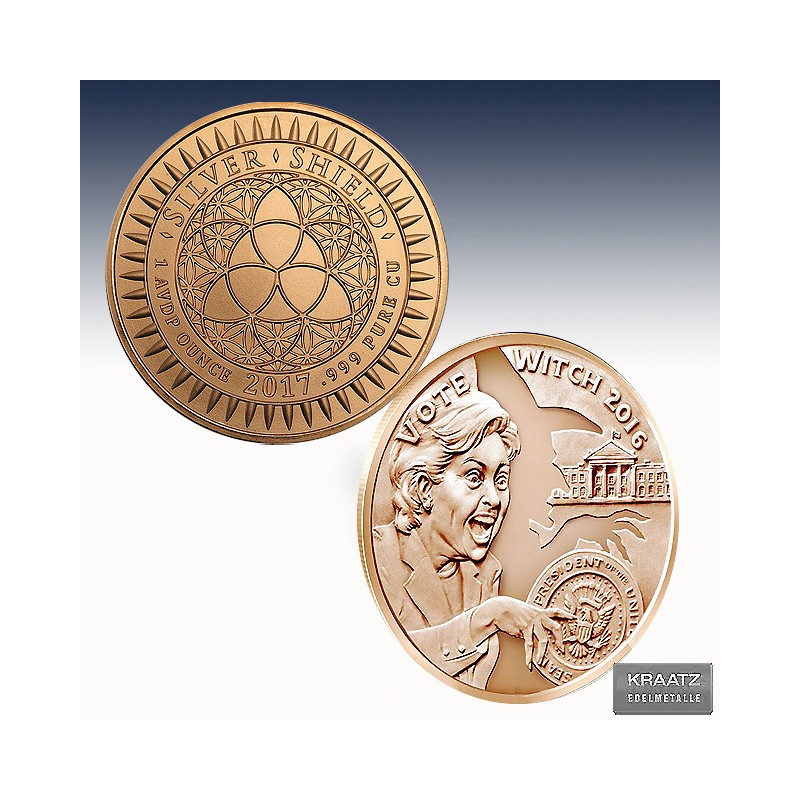 1 x 1 Unze (oz) Copper Round Silver Shield