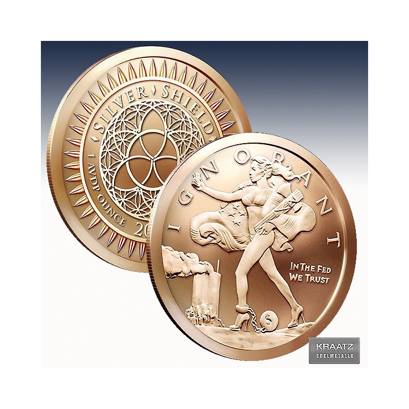 1 x 1 Unze (oz) Copper Round Silver Shield