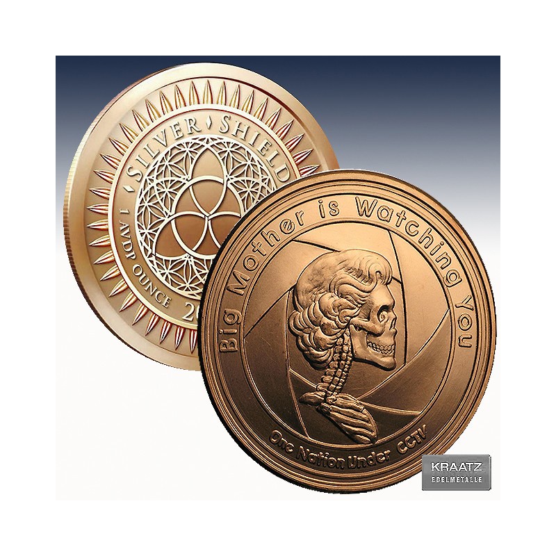 1 x 1 Unze (oz) Copper Round Silver Shield