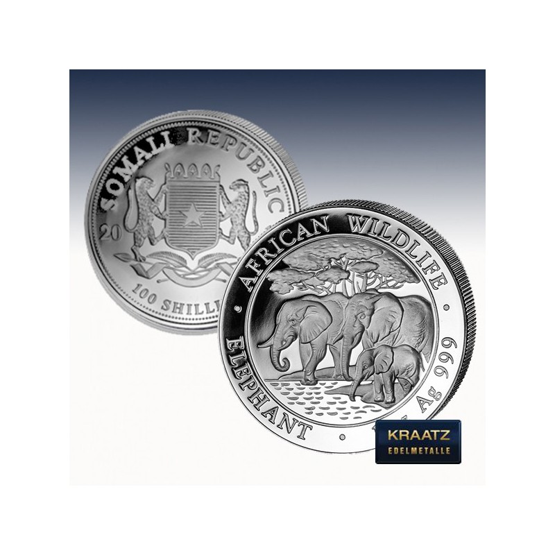 Die somalischen Silbermünzen haben eine Feinheit von 999/1000 und werden in den Größen 1 Unze (31,10 g) sowie 1 kg (1000g) herausgegeben.
