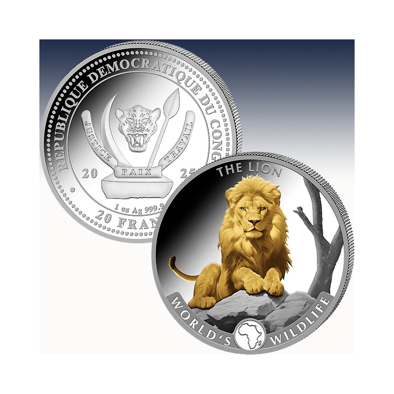 1 x 1 oz Silbermünze 20 Fr Rep.Kongo "World's Wildlife - 7# Löwe 2025"