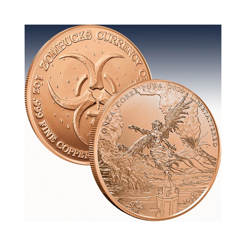 In the Zombucks World Collection, silver and copper pieces are available that explore the fallout of a zombie apocalypse on Earth. To a certain extent, the zombie apocalypse is essentially the world’s worst flash mob, except nobody’s dancing, and everyone forgot the choreography. It’s a scenario where humanity’s downfall comes not from our hubris with technology or environmental destruction, but from our unfortunate transformation into slow-moving crowds with absolutely no sense of personal space. Today, 1 oz Zombucks World Libertattered Copper Rounds are available from JM Bullion.
